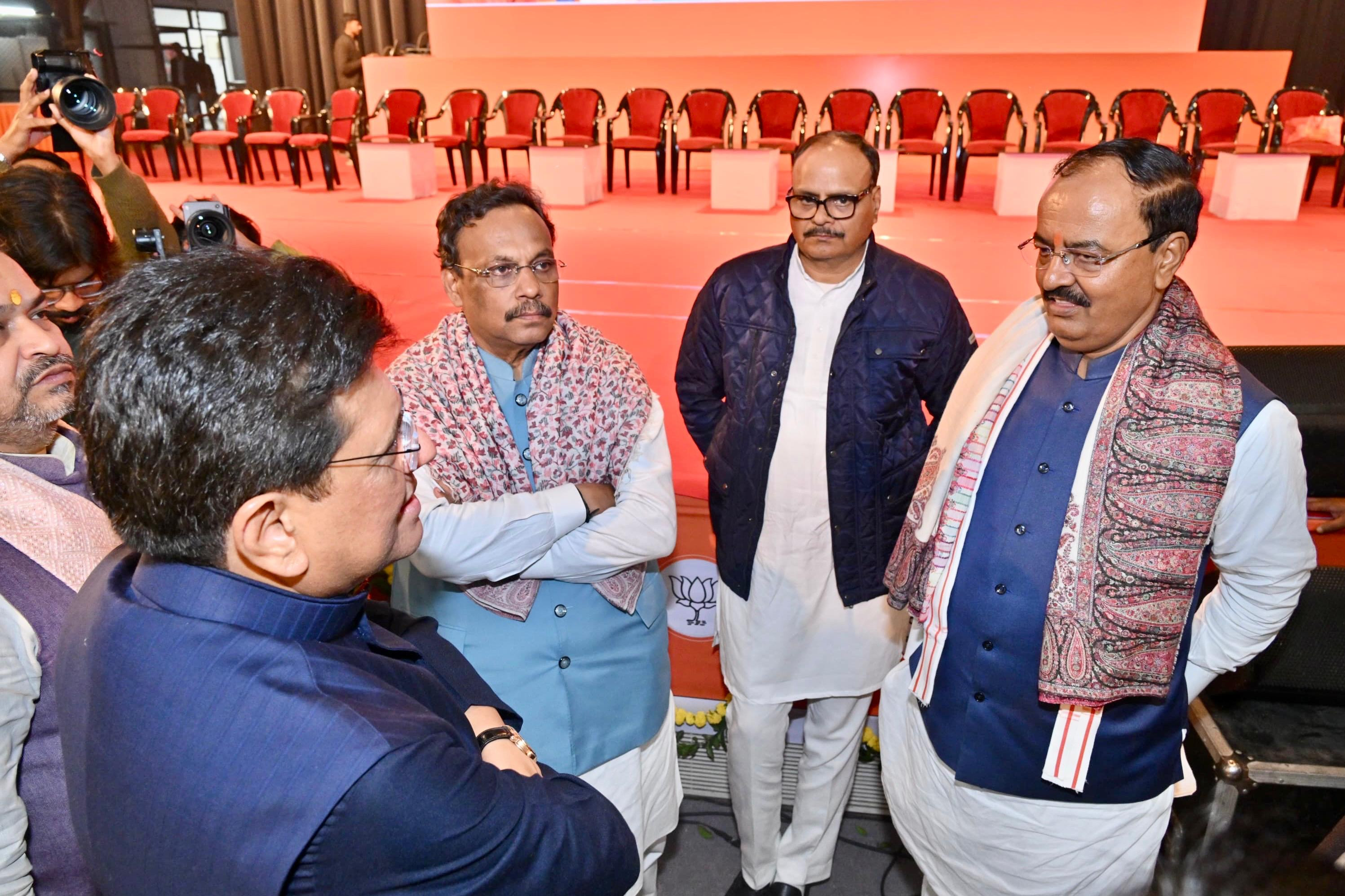 भाजपा द्वारा संगठन पर्व के अंतर्गत आयोजित प्रदेश अध्यक्ष एवं राष्ट्रीय परिषद सदस्य निर्वाचन समारोह के प्रारंभ होने से पूर्व तैयारियों की निरीक्षण बैठक
