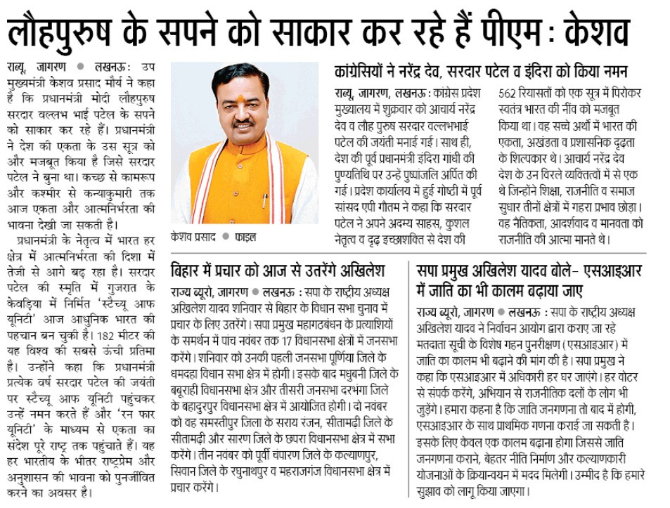01 नवंबर 2025 के विभिन्न समाचार पत्र