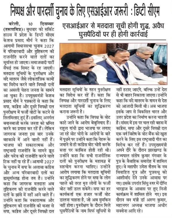 12 दिसम्बर 2025 के विभिन्न समाचार पत्र