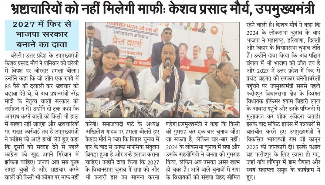 11 जनवरी 2025 के विभिन्न समाचार पत्र