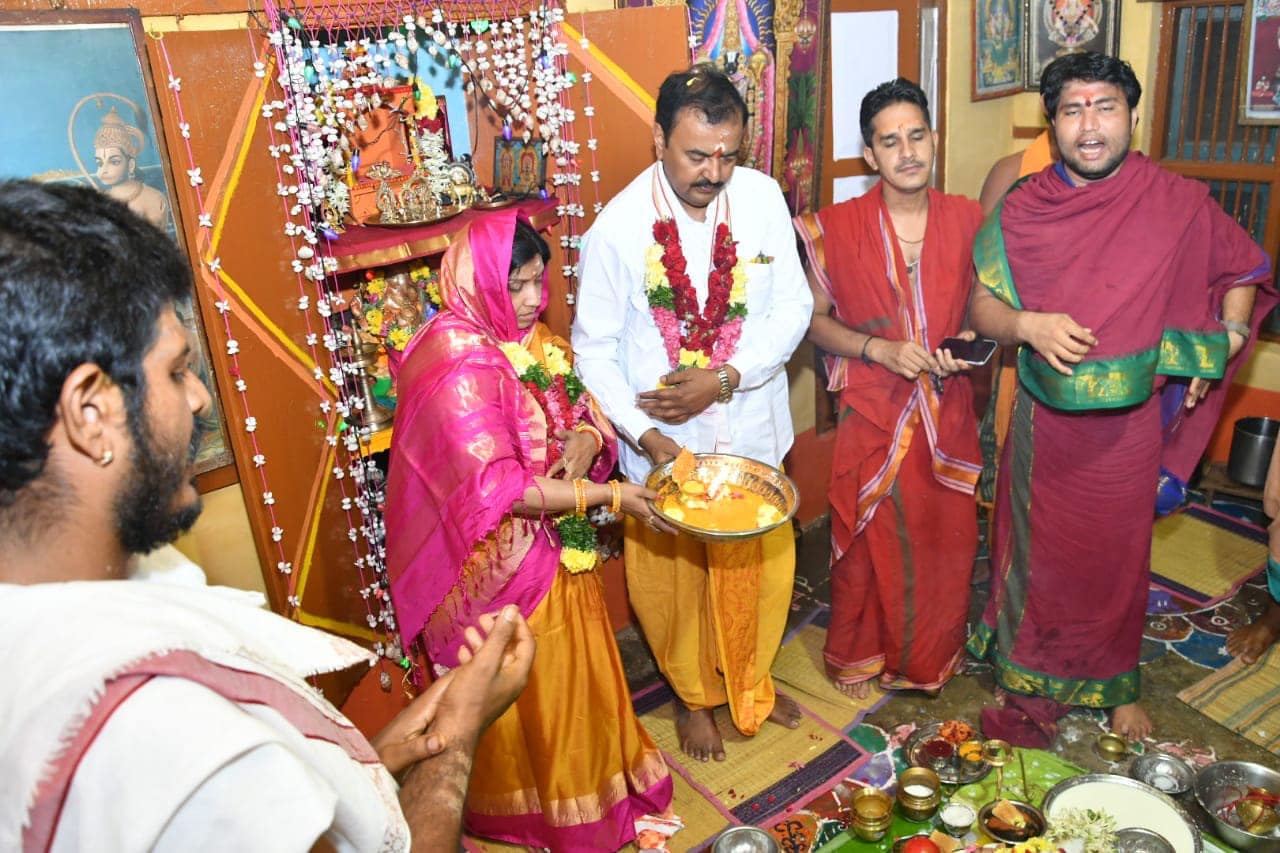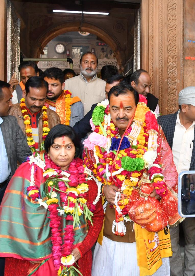 डिप्टी सीएम ने सपत्नीक की रमणरेती के शिव मंदिर में पूजा, बनाए कान्हा के पदचिन्ह