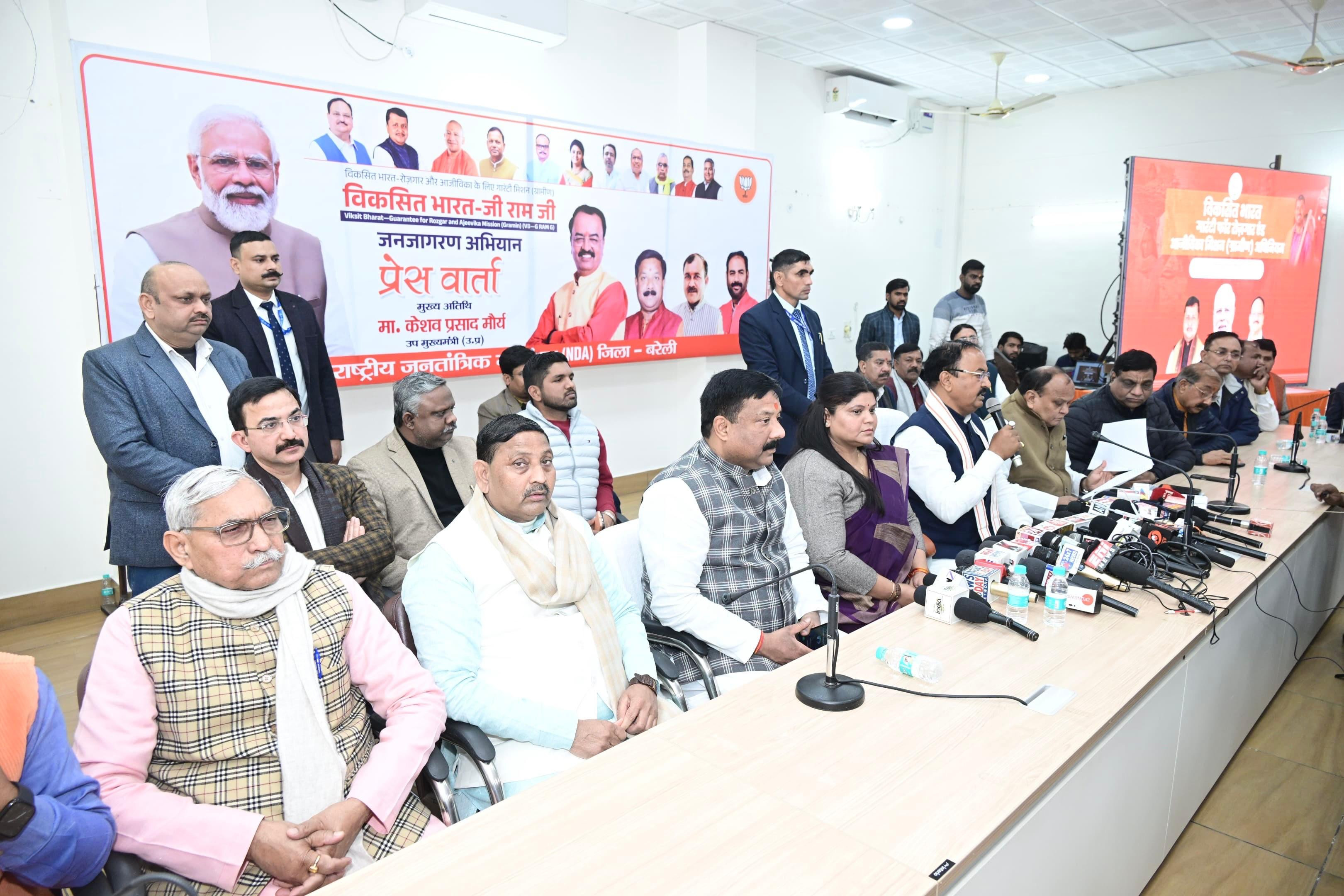 बरेली में विकसित भारत- गारंटी फॉर रोजगार एंड आजीविका मिशन (ग्रामीण) कानून, 2025 के संबंध में आयोजित प्रेस वार्ता
