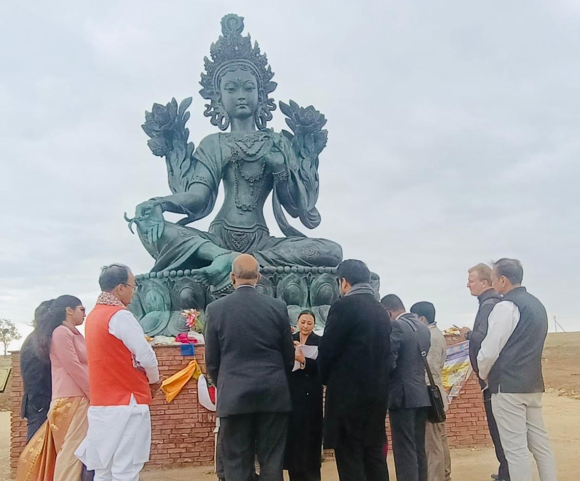 एलिस्ता, काल्मिकिया गणराज्य, रूस में निर्माणाधीन भगवान बुद्ध पार्क में माता ग्रीन तारा देवी जी की प्रतिमा पर पुष्प अर्पित कर नमन