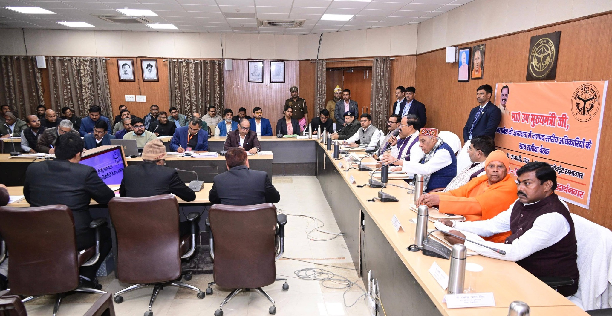 कलेक्ट्रेट सभागार, सिद्धार्थ नगर में जनपद स्तरीय विभागों के प्रशासनिक अधिकारियों के साथ समीक्षा बैठक
