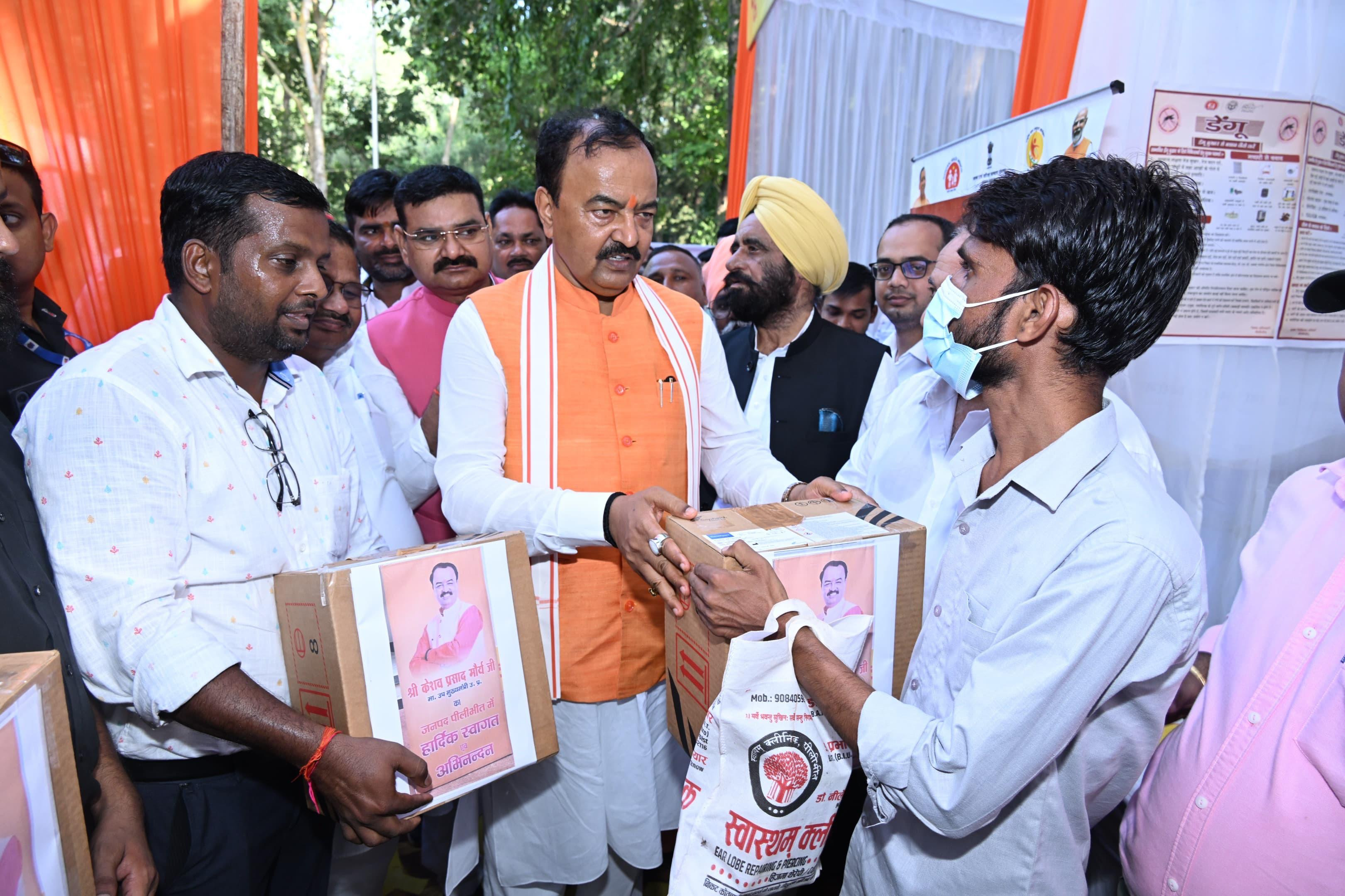 जनपद पीलीभीत में विभिन्न लाभार्थियों को चेक, पोषण किट आदि वितरण
