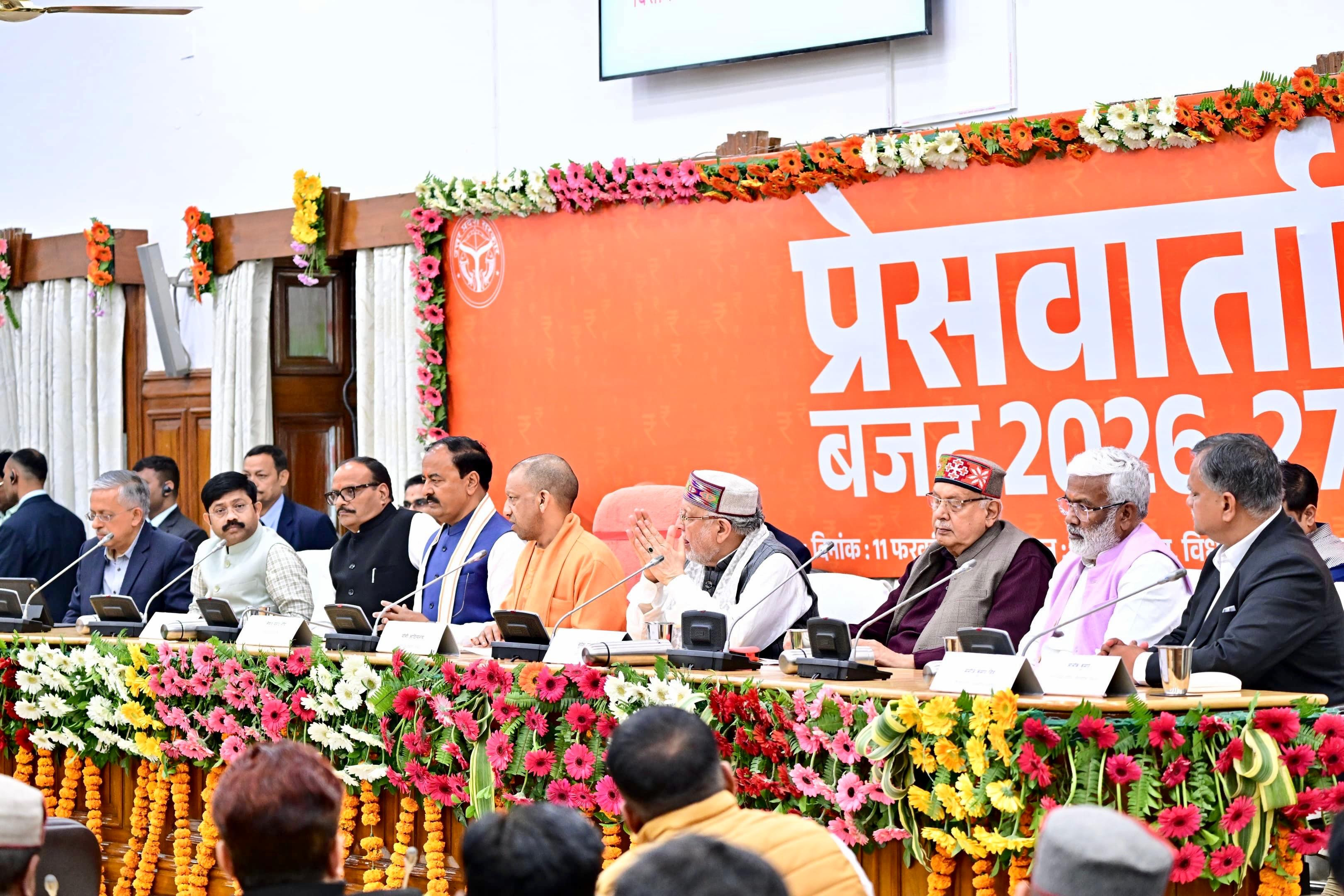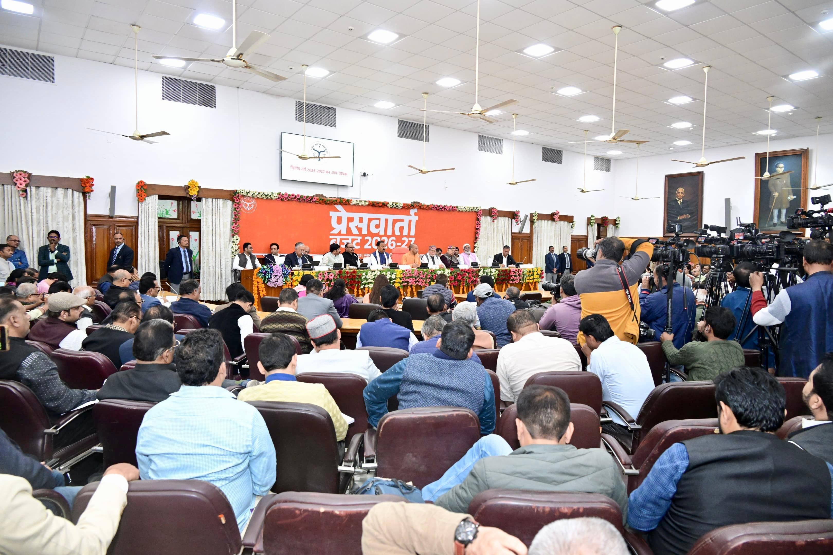 तिलक हाल, विधान भवन लखनऊ में बजट सत्र 2026-27 पर आयोजित प्रेस वार्ता