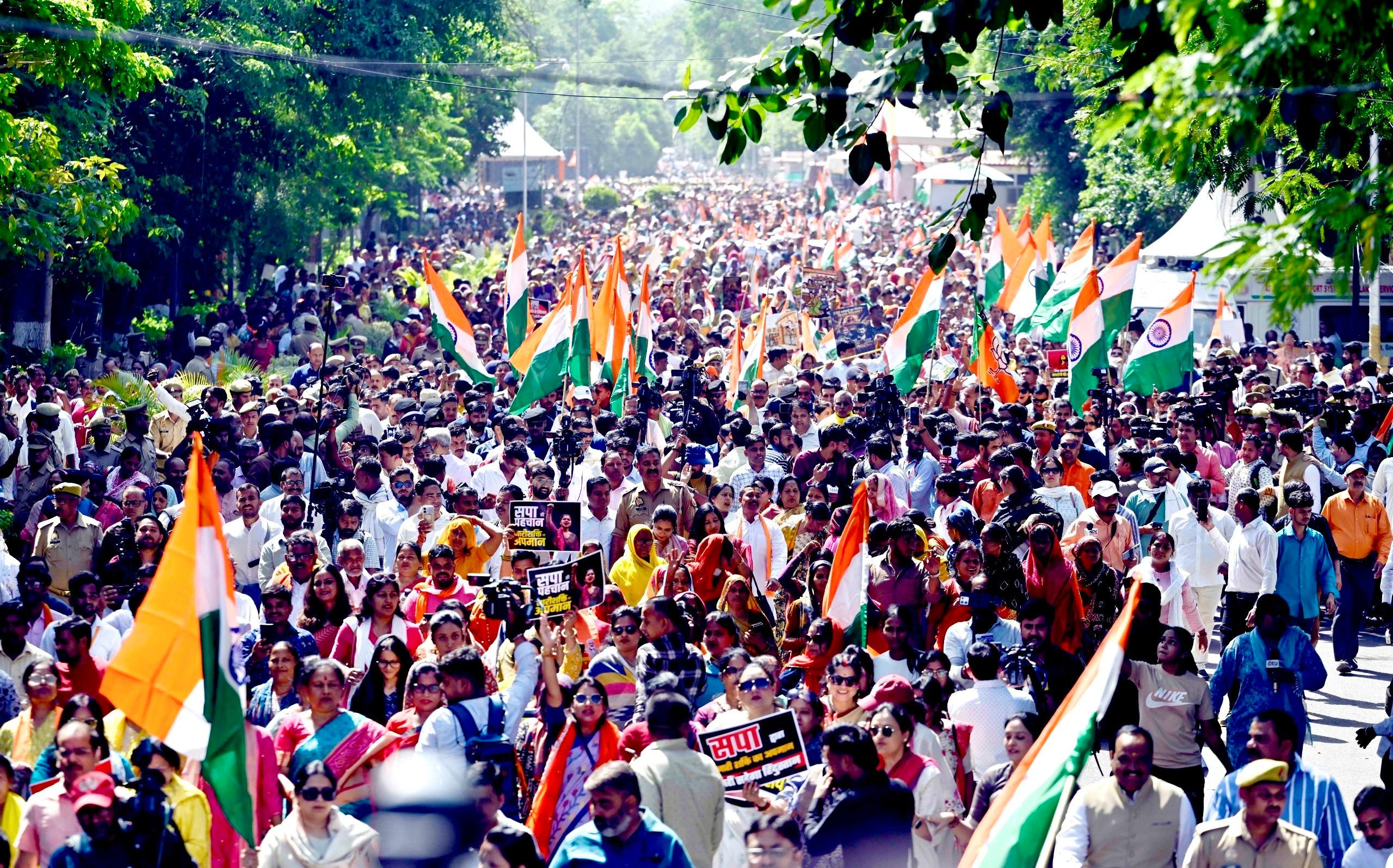 लखनऊ में आयोजित 'जन आक्रोश महिला पद यात्रा'